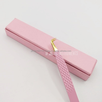 Duurzame Roze 90 Graden Hoek Slanke Laars Wimper Pincet Kleur Gecoat Roestvrij Staal Met Gouden Punt