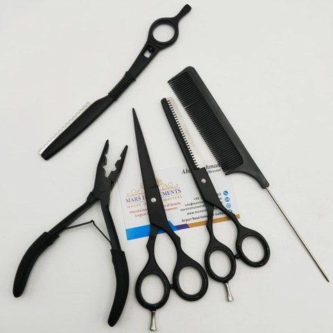 Profesyonel saç uzatma pense alet takımı özel Logo siyah mat paslanmaz çelik testere ve tarak ile makas